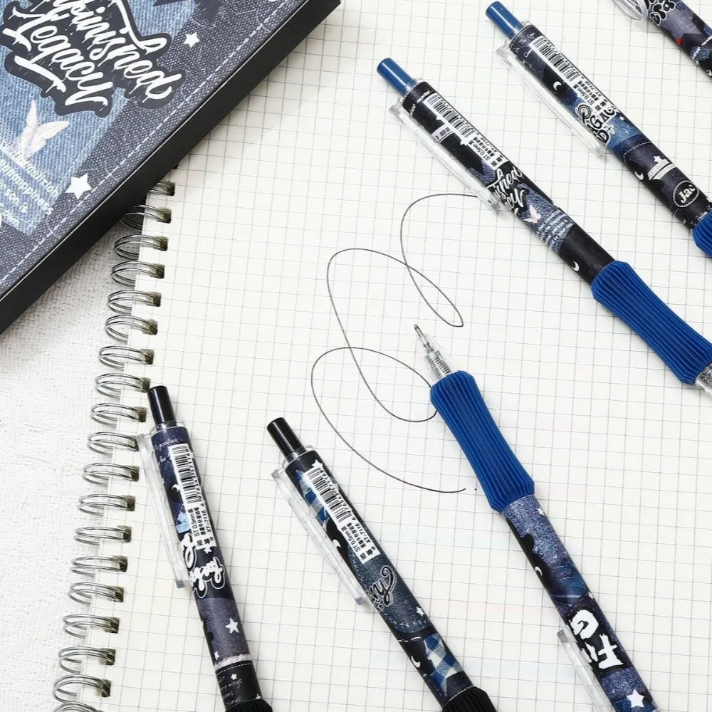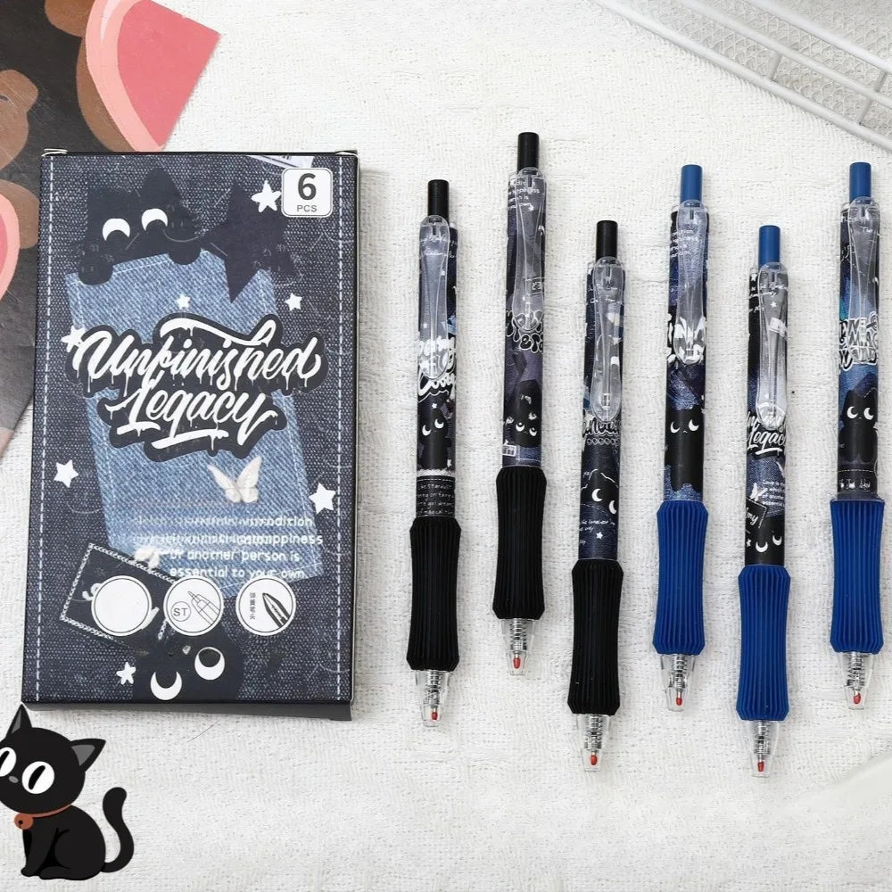6pcs Black Cat Soft Grip Retractable Gel Pens, suitable for journaling, diary writing, marking, school supplies, and holiday par