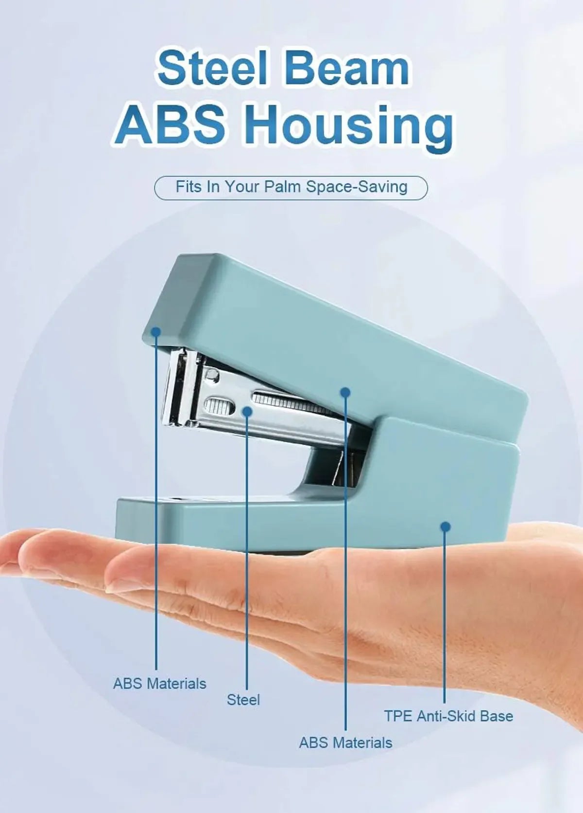 [Space Saving] – The stapler fits in your palm, takes up less space on your desktop